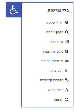 בלחיצה על הכפתור ייפתח תפריט נגישות עם כלי עזר שונים: